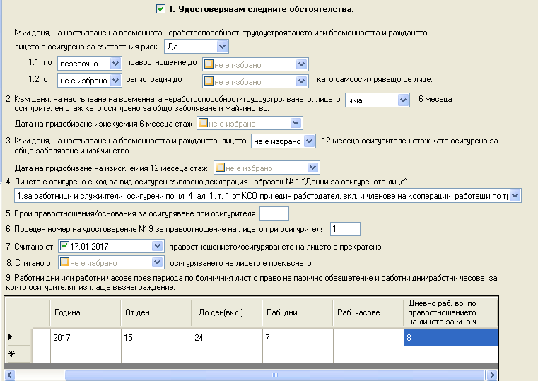 Другото питане, което ми възниква е свързано с Декларация 1. Дни в болнични ще трябва да посоча само 16-ти, което е последния му работен ден или всички дни до края на болничния?  :hmmm: